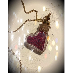 Περιεχει ένα σπάνιο και διαβασμένο ειδικό ερωτικο βότανο στο εσωτερικό του που δε μαραίνεται και δεν ξεραίνεται ποτέ. Μέσα σε γυάλινη συσκευασία σε σχήμα καρδιάς.